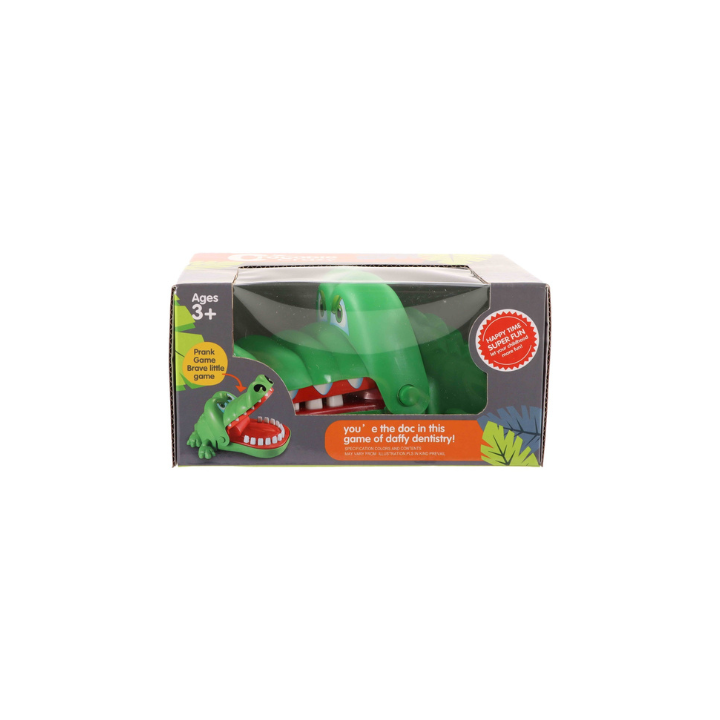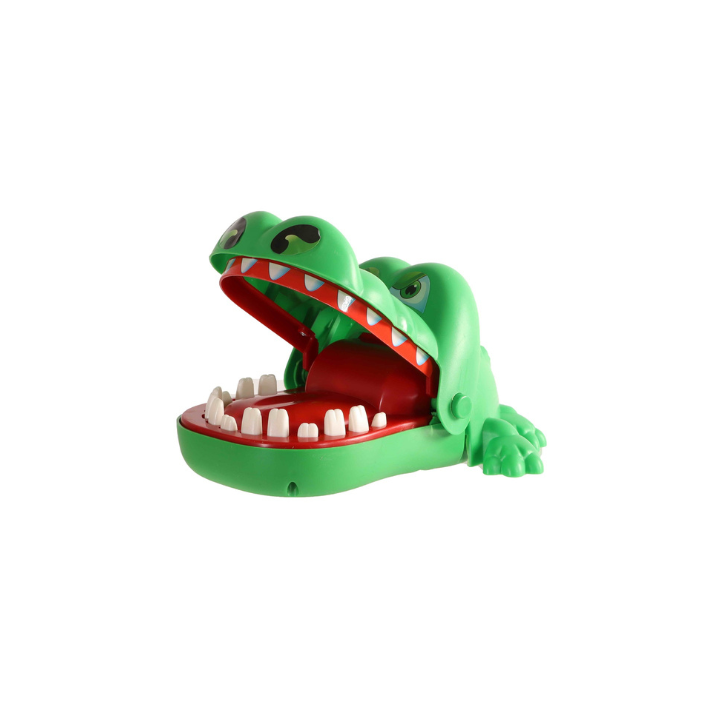 Open de bek van de krokodil, druk om de beurt een tand in,
