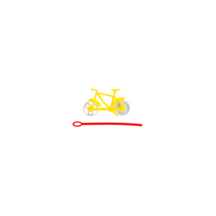 Trek aan het koord en probeer de fiets te lancheren over de tafel.