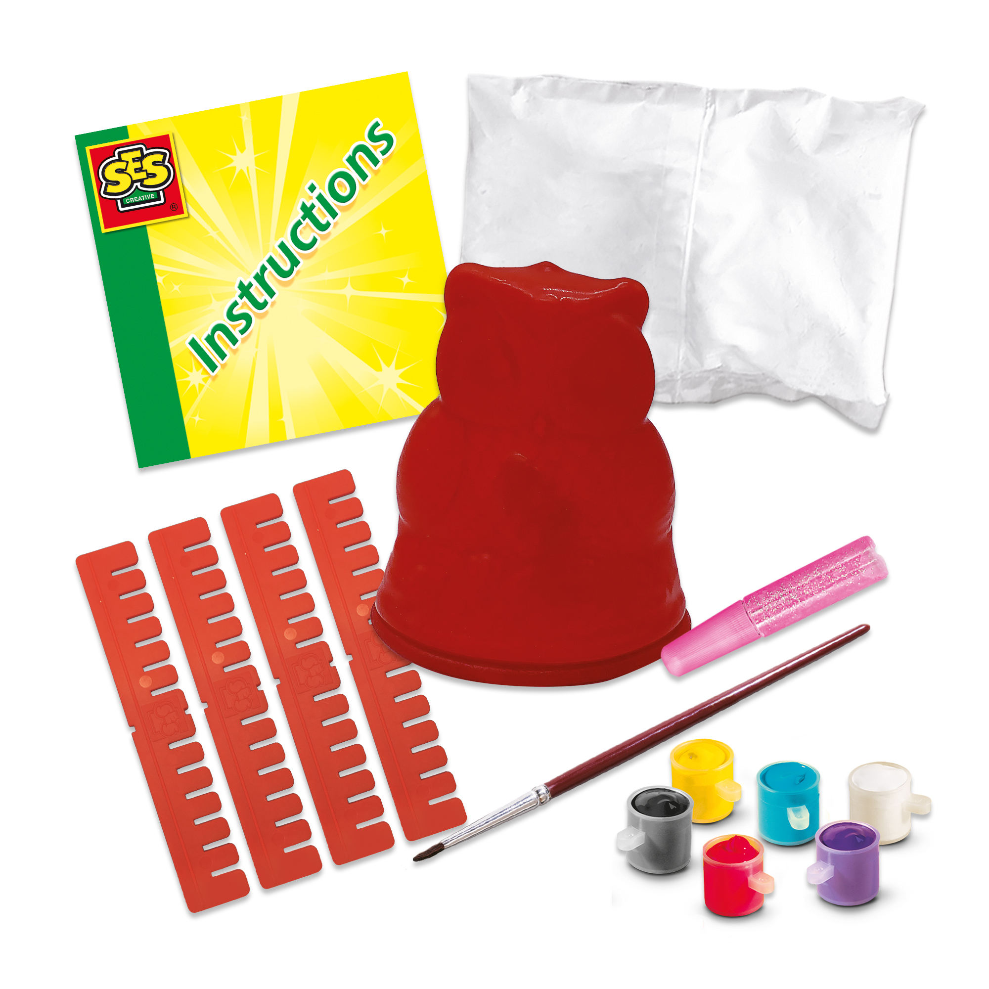 Vind jij uilen ook zo leuk? Met dit creatieve pakket van SES maak je ze nu van gips. Giet het gips in de 3D mal. Laat het beeldje drogen en beschilder je uil met de bijgeleverde verf. De glitters maken hem helemaal af. Leuk om te doen en een super resultaat!