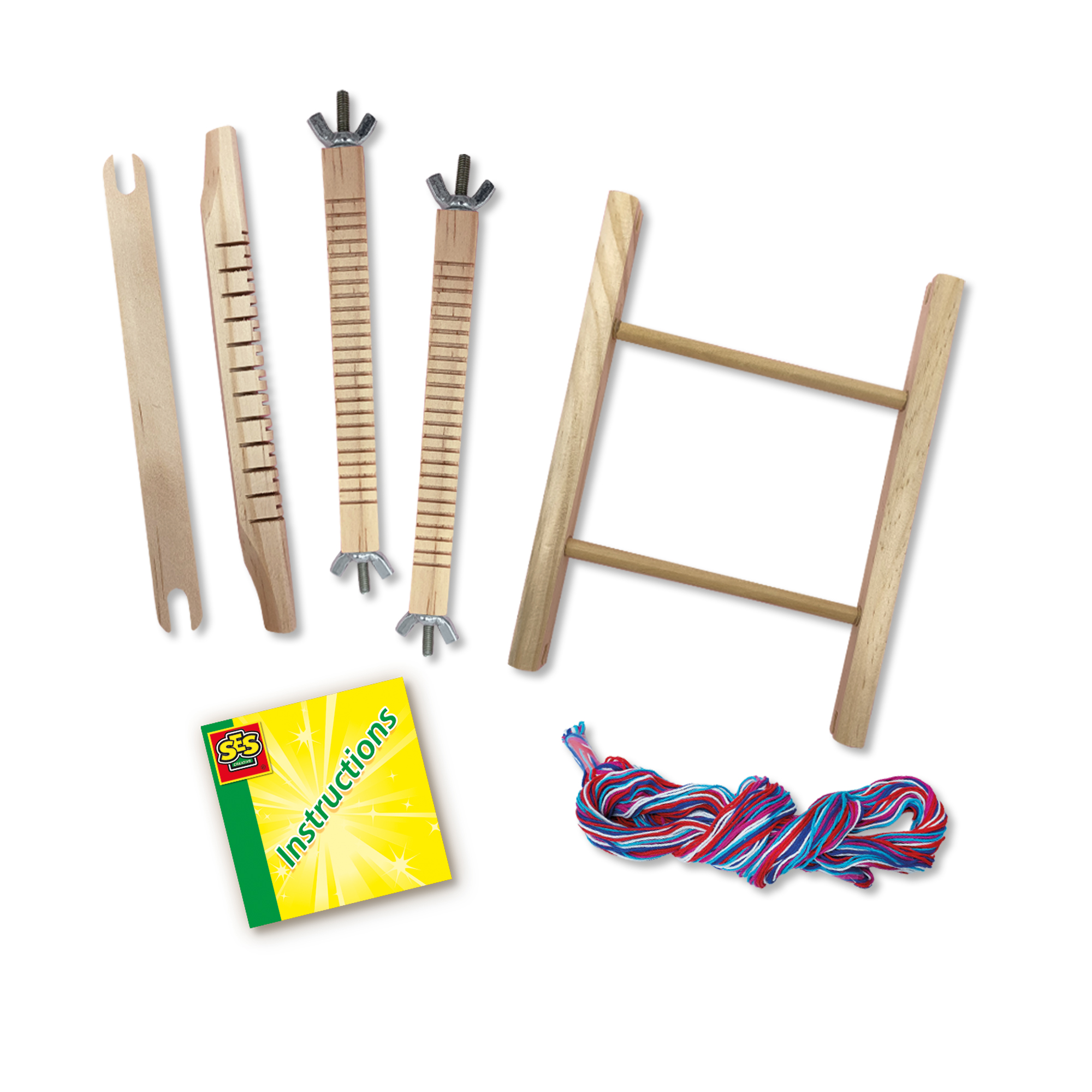 In deze doos zit een duurzaam weefraam met accessoires en verschillend, gekleurde garen om prachtig, gekleurde creaties mee te weven. Inclusief 60 meter garen.